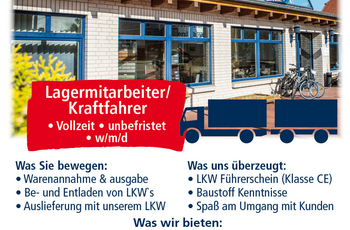 Baumarkt: 9.00 - 18.00 Uhr, Baustoffe: 7.00 - 18.00